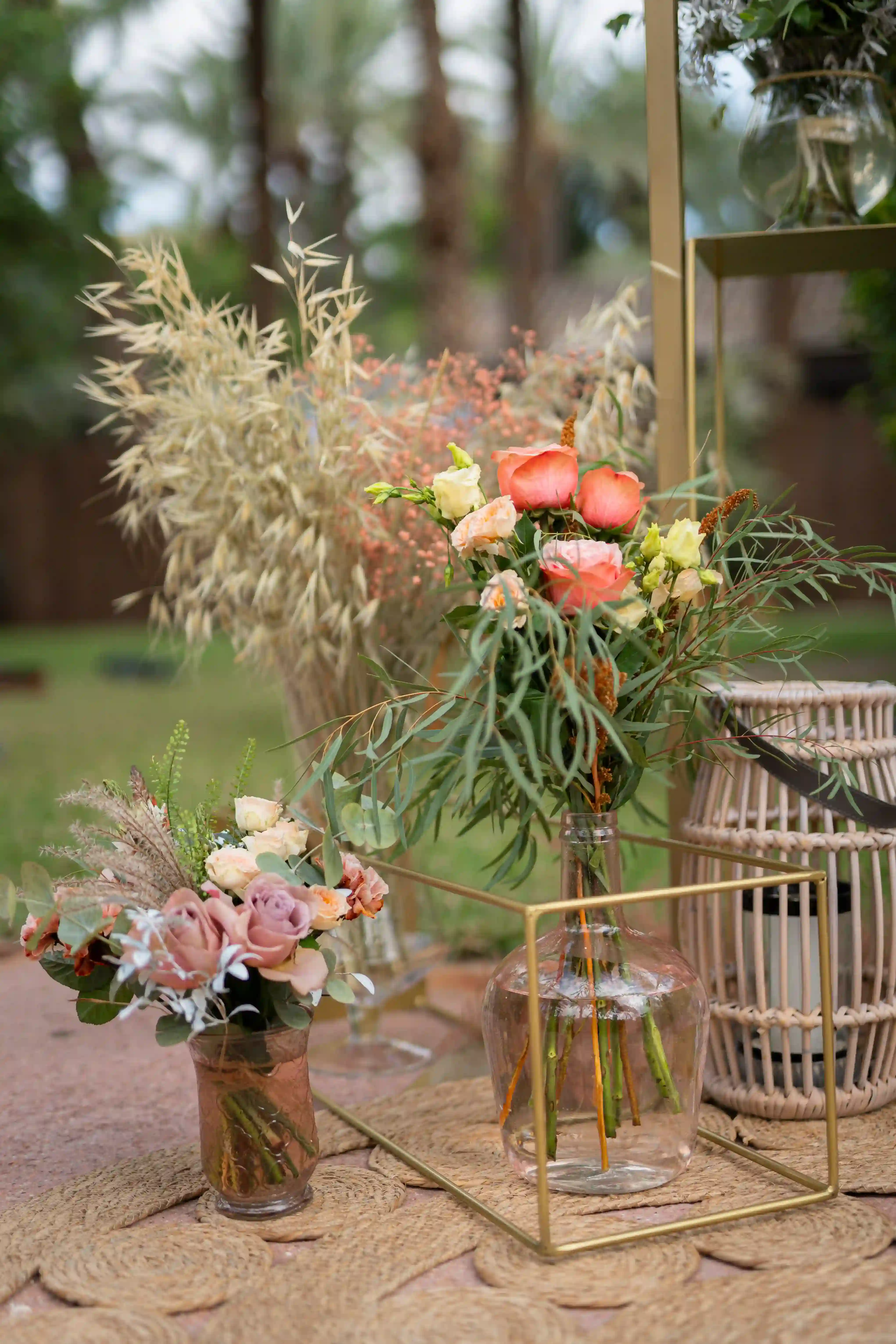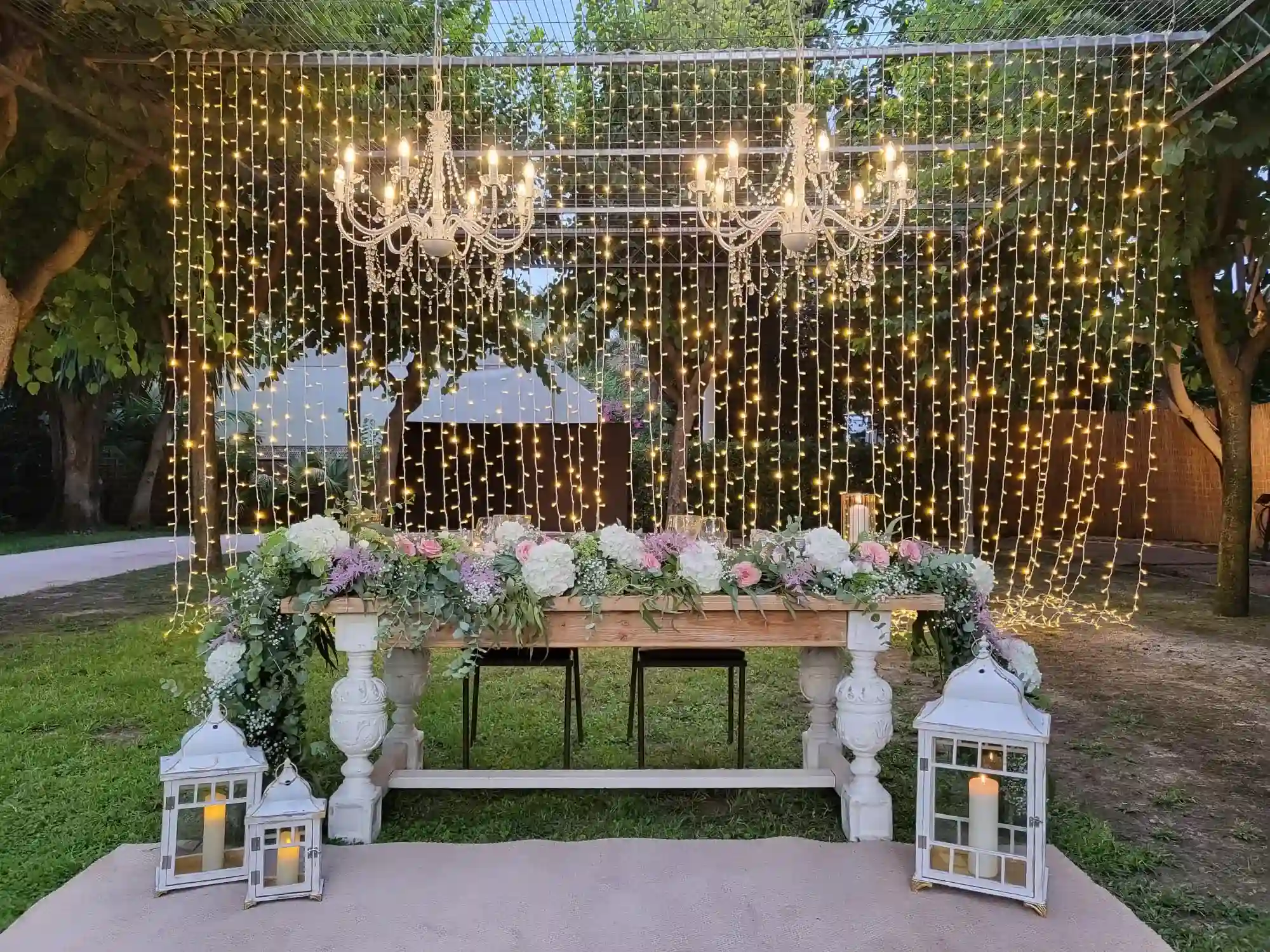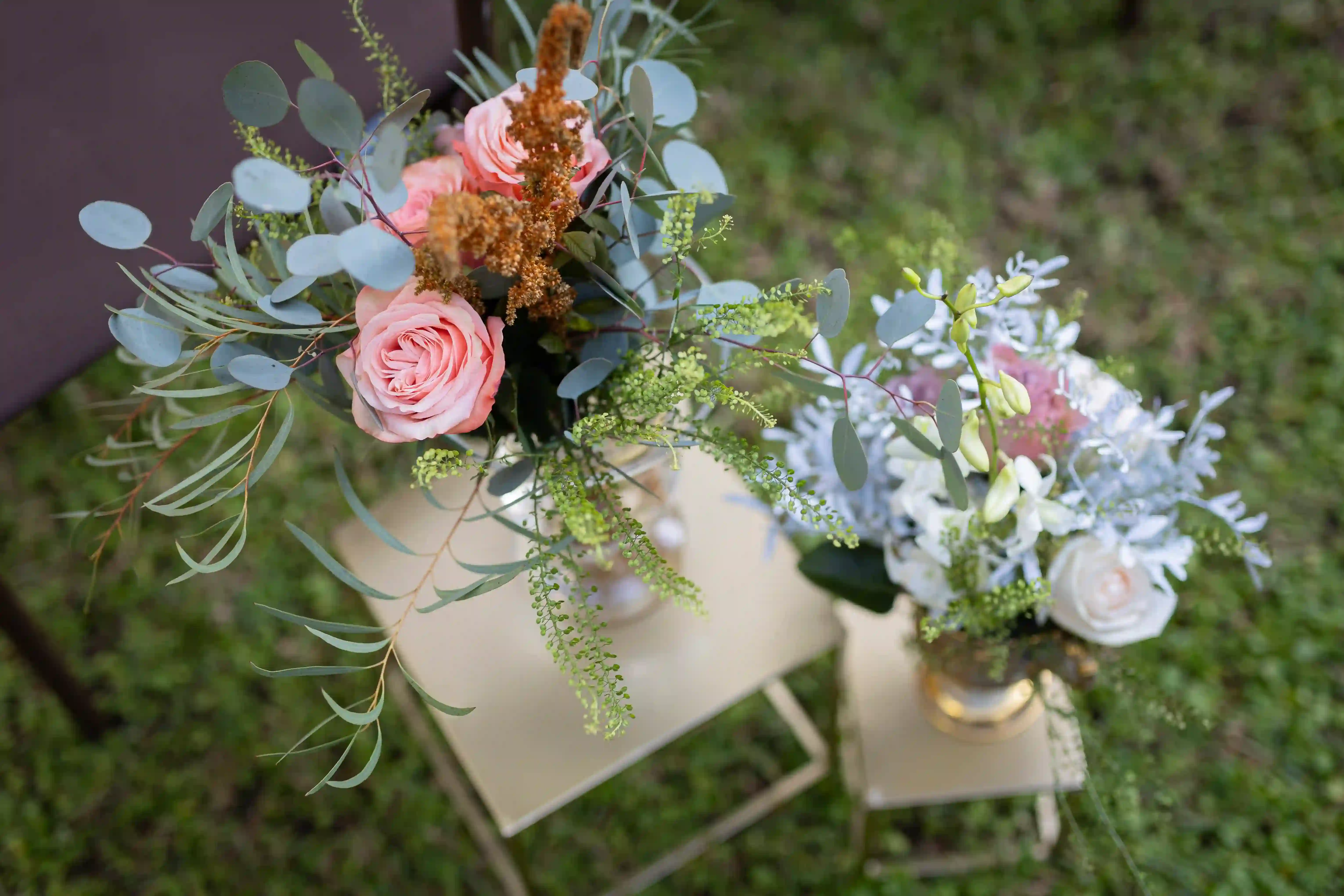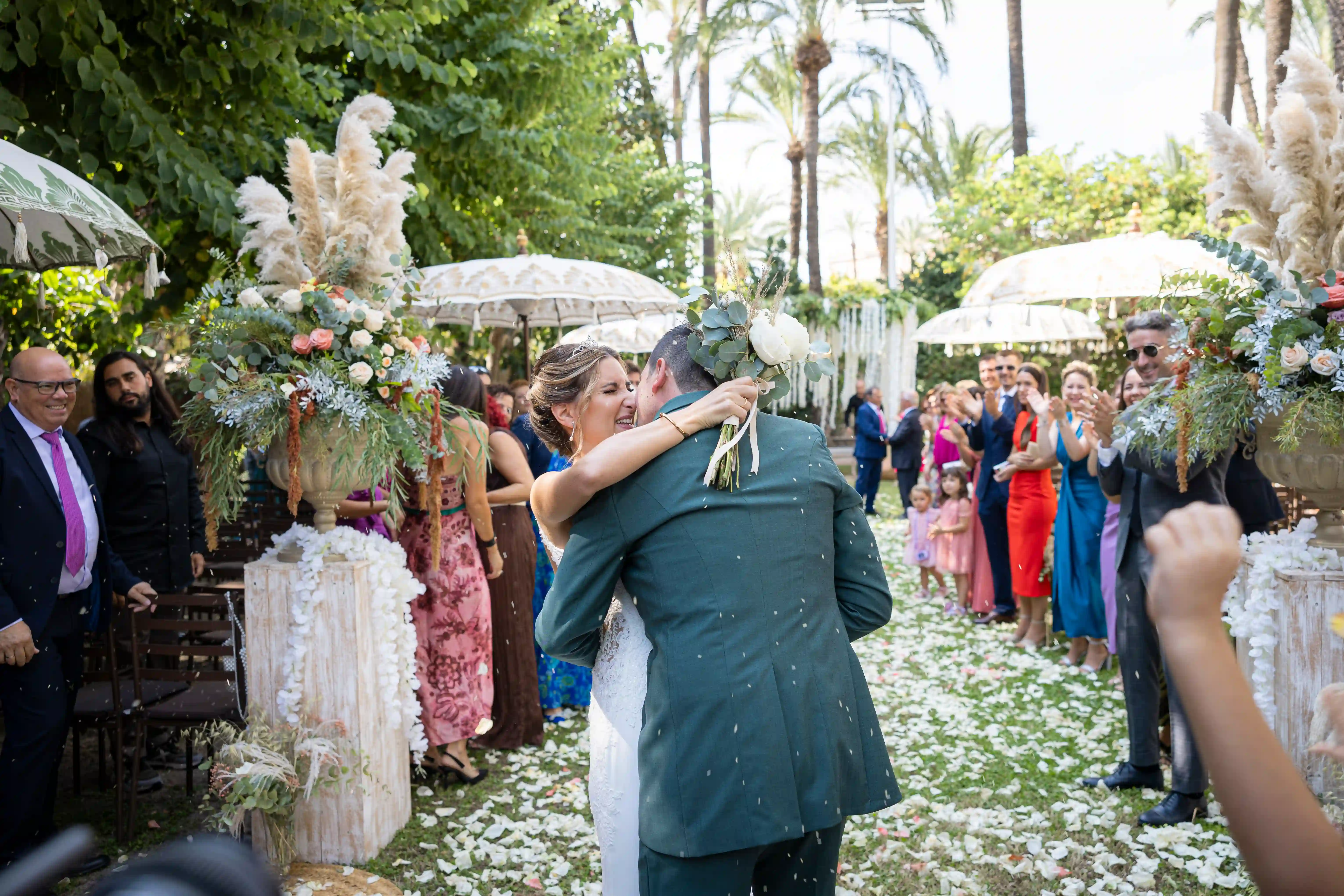 Decoración floral para ceremonia en el Jardín Botánico Huerto del Cura, en Elche.